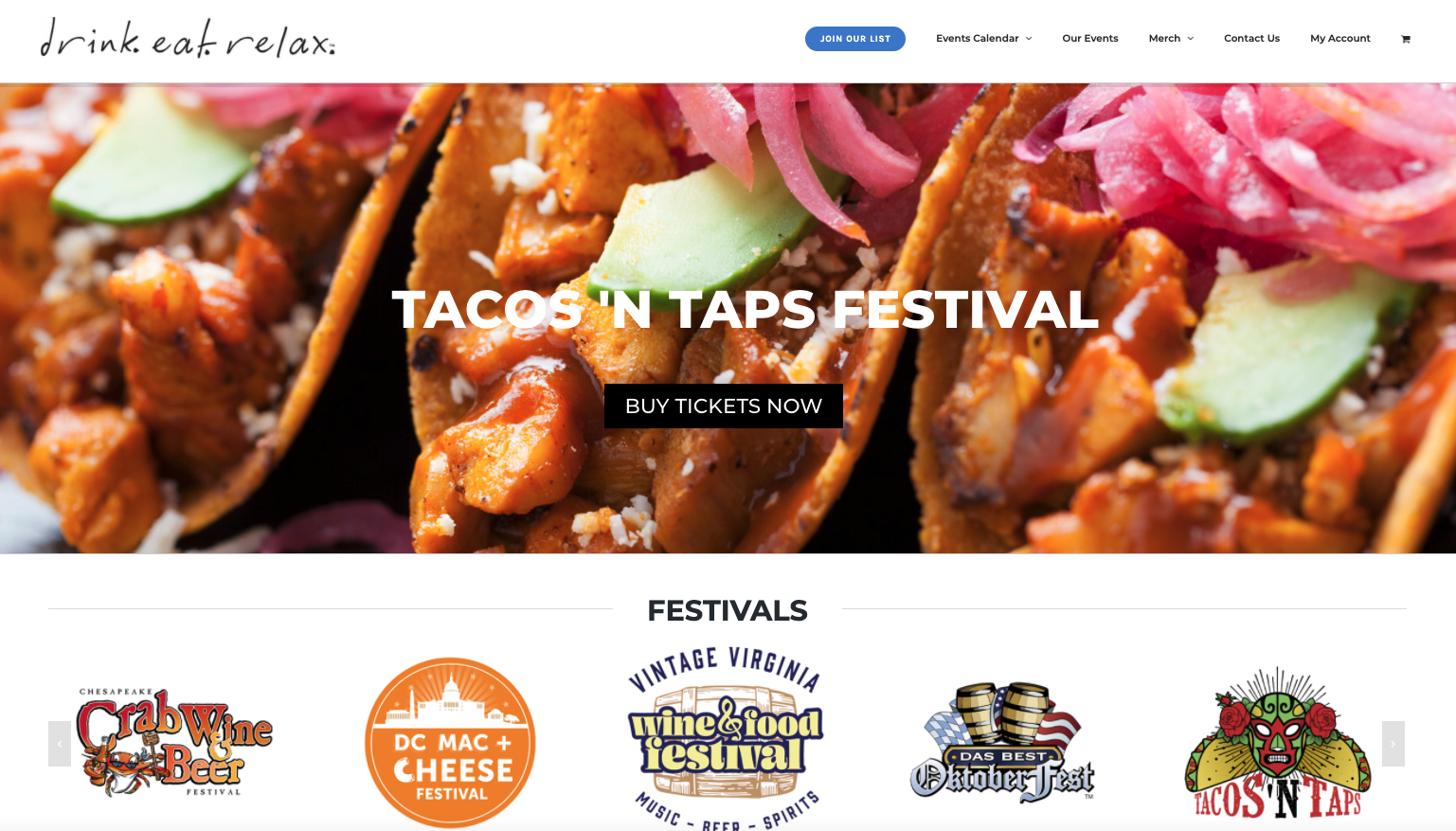 Drink.Eat.Relax produces numerous events throughout the United States. BrandTrellis has enabled ecommerce ticket sales for multiple locations, with numerous ticket options and landing pages for each event.